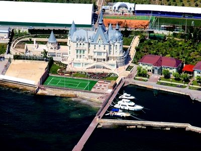 Дно и стены бассейна возле резиденции, а также все туалеты и ванные комнаты внутри «замка» оформлены эксклюзивными мозаиками итальянской компани Bisazza - одного из мировых лидеров в по производству мозаик премиум-класса. Каждую такую картину-мозаику итальянские художники изготавливают вручную. Обошлась вся эта красота весьма недёшево: только изготовление самой мозаики стоит порядка 300 евро за квадратный метр - и это без стоимости сборки мозаик на месте.