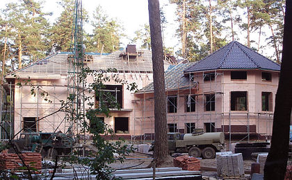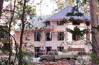 Общую площадь дома Кузьмина, который уже построен под крышу, можно оценить в 400-600 квадратных метров.