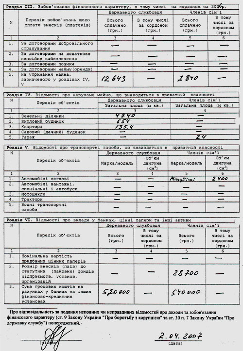 Имение в Плютах фигурировало в декларации Лавриновича за 2003 год, хотя при этом у него значилось меньше пяти тысяч гривен ежемесячного дохода, а также 112 тысяч гривен на счету.