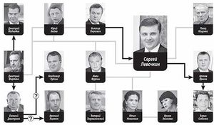 Фурсин представлял интересы Левочкина в РосУкрЭнерго. Шиллер - в торговле оружием, Артем Ершов – в Ощадбанке, Сергей Святко – в Государственном ипотечном учреждение и с страховой компании "Киев Ре", которая занималась выводом денег в оффшоры, Вячеслав Авраменко – в СП "Будинвест!, зять Арсений Новиков в "Укрспецэкспорте" и "Нефтегазе", сестра – в бизнесе и парламенте (она депутат от Партии регионов, причем, Борис Колесников, включивший ее в список, по его словам, не знал о родственных отношениях Сергея и Юлии). [1]