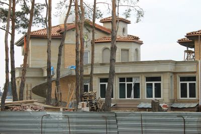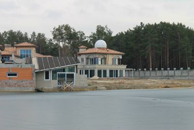 Строительство этой резиденции началось в 2010 году, параллельно с Межигорьем, и велось дикими темпами до вчерашнего дня. Вчера это место спешно покинули все строители и техника. Весь архитектурный комплекс стоит на земле, которой полгода кряду засыпали Голубое озеро - одно из любимых мест отдыха киевлян. Землю сюда днем и ночью возили трехосными 30-тонными самосвалами, несмотря на протесты жителей села, засыпали озеро в 50-ти метрах от берега, глубиной 15 метров.