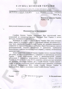 Несмотря также и на то, что в депутатском запросе были указаны конкретные номера документов, подтверждающих пребывания Чарльза Леви в СБ Украины, никаких действий по выяснению данных обстоятельств сотрудниками ДЗНД СБ Украины предпринято не было. Вместо этого был подготовлен неправдивый ответ, в соответствии с которым СБ Украины информацией о гражданине США Чарльзе Леви не располагает. Ответ подписал в.и.о. Председателя СБ Украины В. Наливайченко.