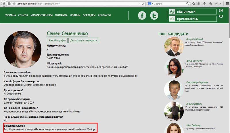 Вместе с тем, Семен Семенченко прошел в Верховную Раду Украины от партии Садового "Самопомич" под № 2.