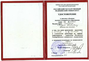 - 1985 - (14 лет!) якобы поступил в Российский государственный медуниверситет им. Н.И. Пирогова на лечебный факультет. Между прочим, Николай Иванович Пирогов действительно в 14 лет поступил на медицинский факультет Московского университета. Наверняка не случайное совпадение.