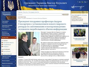 Несмотря на это, Слюсарчуку удалось добиться определенного признания со стороны высших должностных лиц Украины. 23 июня 2009 года он встретился с бывшим тогда президентом Украины Виктором Ющенко, который поздравил его «с установлением нового мирового рекорда по запоминанию и воспроизведению человеком сверхбольшого объема информации». 22 декабря 2009 года Ющенко провел встречу со Слюсарчуком, во время которой обсуждал с ним идею создания «Института Мозга». 20 сентября 2011 года президент Украины Виктор Янукович подписал указ о присуждении Слюсарчуку Государственной премии Украины в области образования за 2011 год.