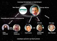- Бойко, Юрий Анатольевич, кум, соучредитель РосУкрЭнерго, министр топлива и энергетики Украины, член Партии регионов