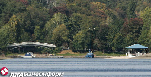 Спускаемся от расположенного на высоком берегу Днепра водохранилища ГАЭС к водохранилищу Киевской ГЭС. С берега Киевского моря на территорию «Межигорья» тоже не попасть: все тот же глухой забор врезается в воду на расстояние 25-30 метров. Это южная часть урочища. На северном склоне - опять-таки вездесущее пятиметровое ограждение, врезающееся в Киевское водохранилище.