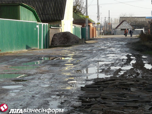 Поворот с «премьерской» улицы Спасской на старую, не коттеджную, половину Новых Петривцев. Улица Вышгородская. Поневоле вспоминается нынешний предвыборный лозунг кандидата в президенты Януковича – «Украина для людей». Так и хочется переиначить – «Украина - для всех, Межигорье - для избранных».