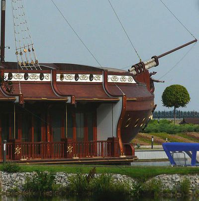 На территории резиденции президента Украины Виктора Януковича Межигорье расположен дебаркадер Галеон, предназначенный для отдыха главы государства на воде в летнее время. Фотографии внутреннего убранства этого объекта были обнародованы в интернете.