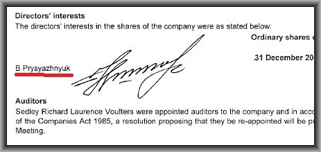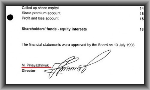 Изучая отчеты британской фирмы было замечено, что хотя Николай Присяжнюк юридически больше не имел отношения к компании, фактически, он мог продолжать управлять ею, сидя в кресле заместителя житомирского губернатора. Просто подписывая документы, вместо своего брата.